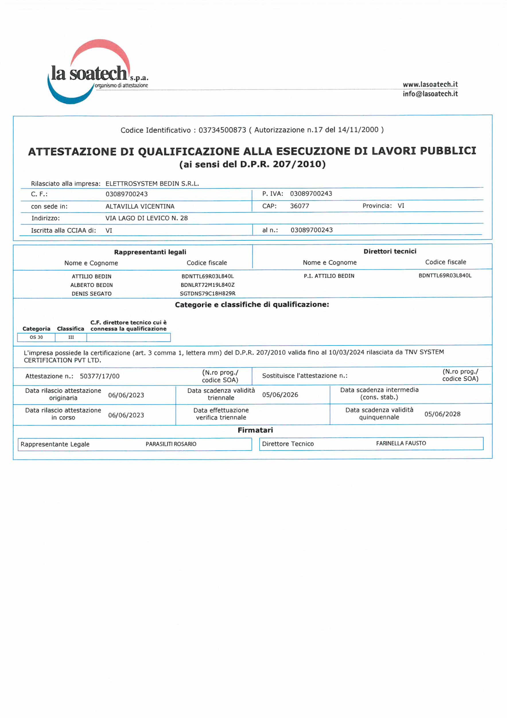 L’Attestazione SOA è la certificazione obbligatoria per la partecipazione a gare d’appalto per l’esecuzione di appalti pubblici di lavori, ovvero un documento necessario e sufficiente a comprovare, in sede di gara, la capacità dell’impresa di eseguire, direttamente o in subappalto, opere pubbliche di lavori con importo a base d’asta superiore a € 150.000,00; essa attesta e garantisce il possesso da parte dell’impresa del settore delle costruzioni di tutti i requisiti previsti dalla attuale normativa in ambito di Contratti Pubblici di lavori.